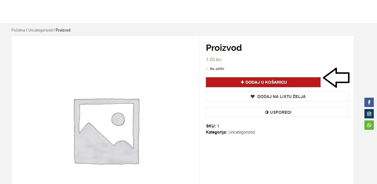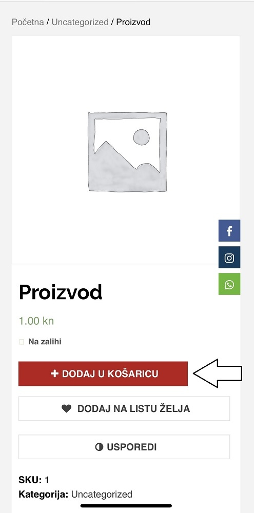 Nakon što ste u web shopu pronašli proizvod koji želite kupiti, izaberite ponuđene opcije (boja, veličina i sl.). Nakon odabira opcija prikazuje se cijena odabranog proizvoda. Izaberite broj komada proizvoda te pritisnite DODAJ U KOŠARICU. Vaš proizvod je spremljen u košaricu.